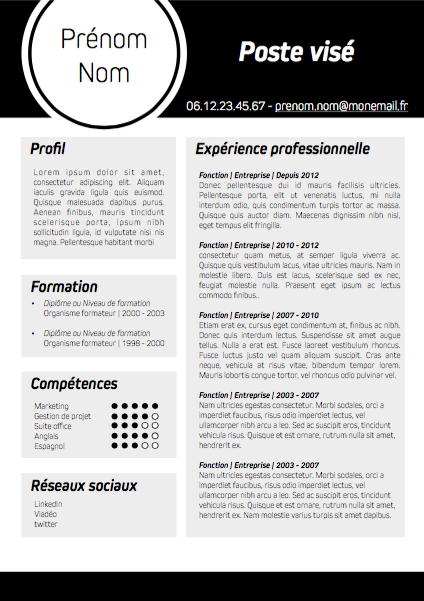 Voici un CV très élégant, sobre et efficace. Il vous permettra à coup sûr de vous démarquer des autres candidats.